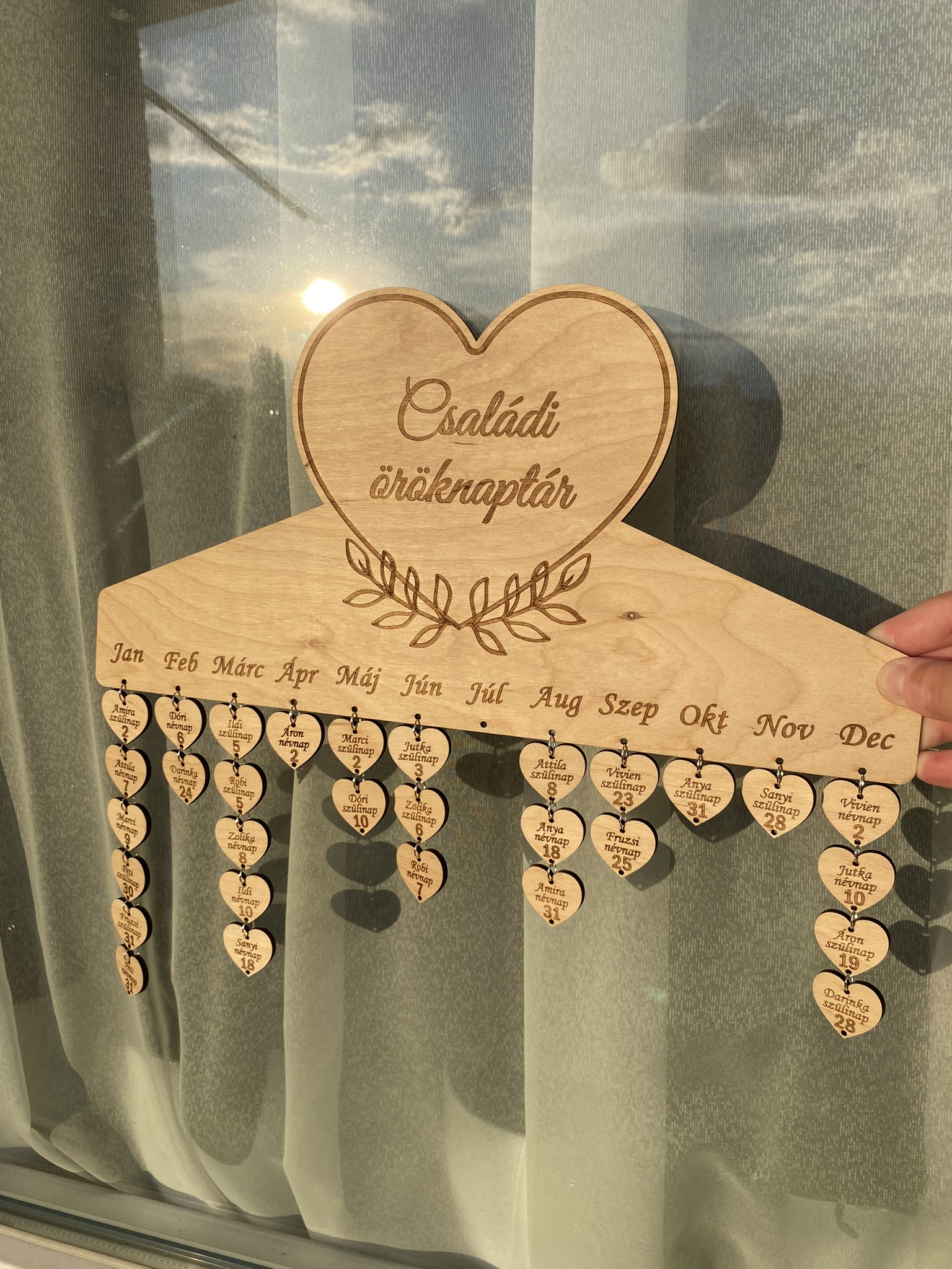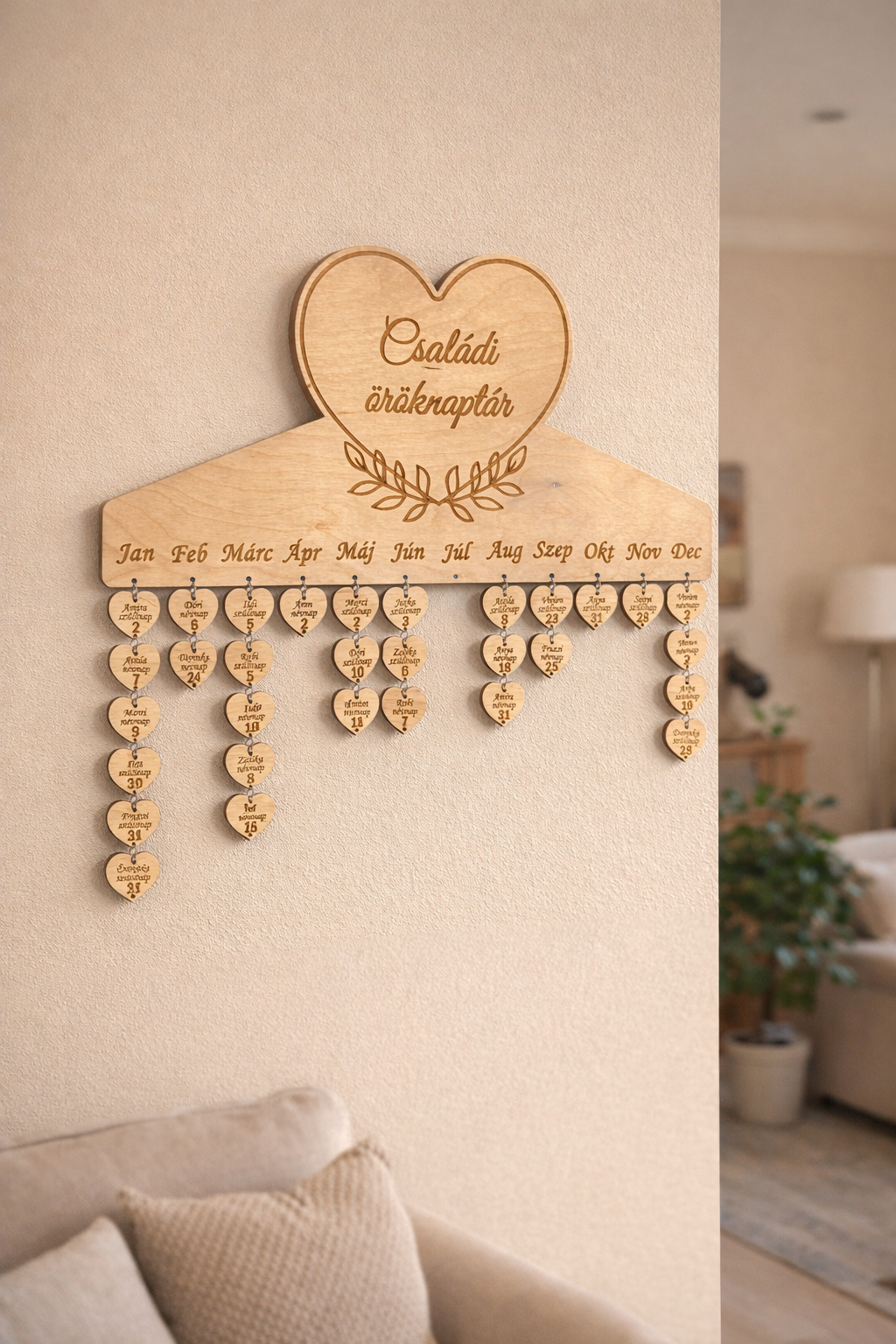 Tedd láthatóvá és felejthetetlenné a család legfontosabb napjait ezzel a gyönyörű, természetes fából készült családi öröknaptárral! Ez a dekoratív és praktikus falidísz segít, hogy soha többé ne maradjon ki egy születésnap, névnap vagy évforduló.