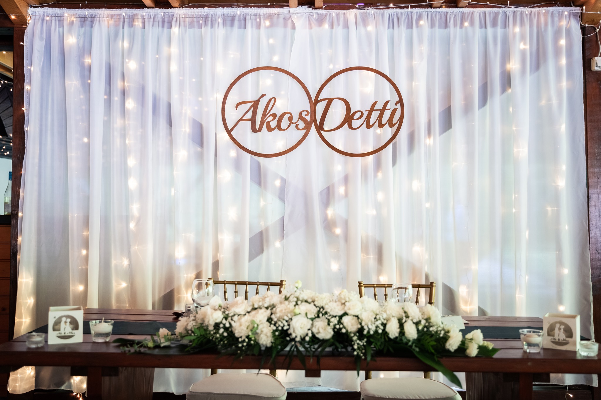 Tedd még emlékezetesebbé az esküvőt egy gyönyörű, egyedi készítésű fa névtáblával, amely tökéletesen mutat a pár mögött, a főasztalnál vagy a szertartás helyszínén. Ez a különleges dekoráció nemcsak a nap dísze, hanem később az otthonotok meghitt emléke is lehet.
