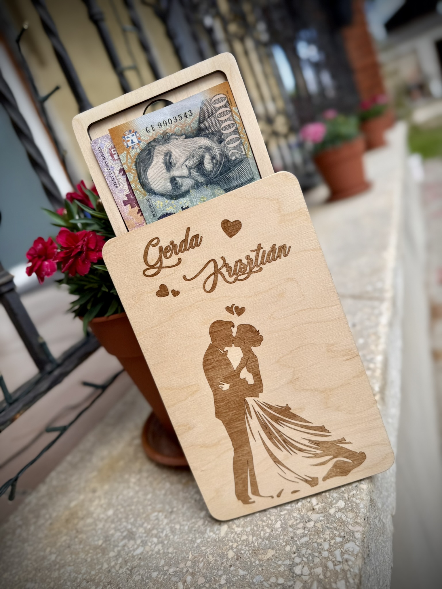 A pénzátadó nemcsak ajándék, hanem maradandó emlék is lesz. Tökéletes választás esküvőre, nászajándéknak vagy pénz kreatív átadására.