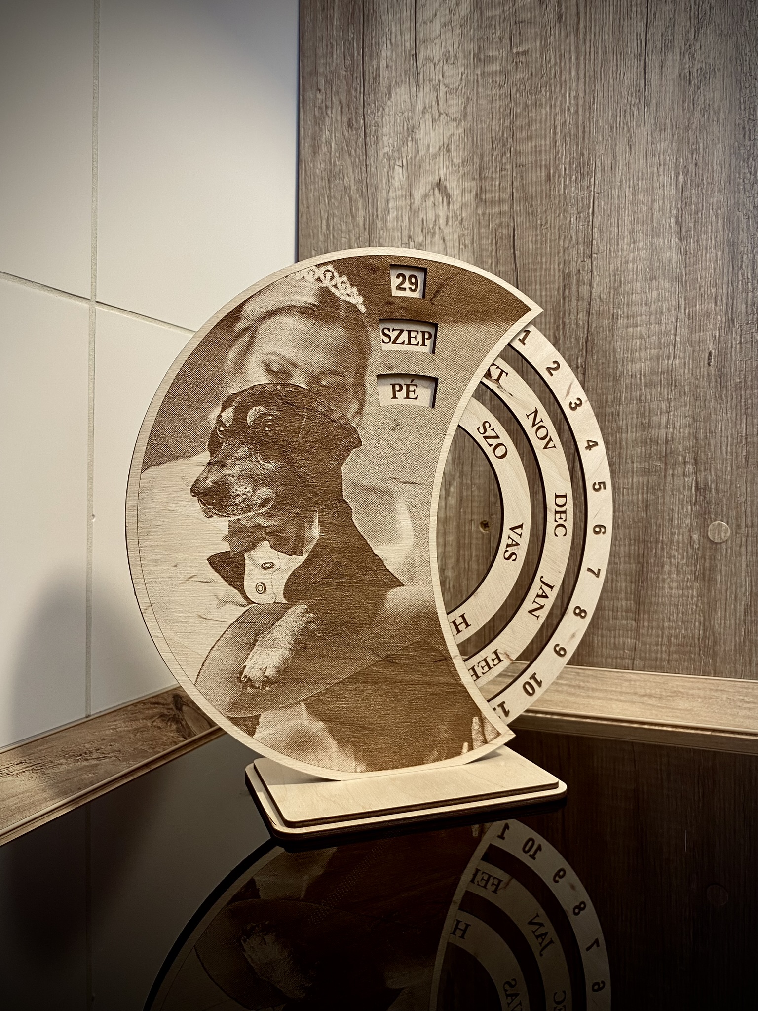 Adj neki új értelmet egy fából készült, fotóval gravírozott öröknaptár formájában!